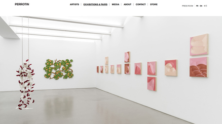 Perrotin формирует другой образ — динамичный и насыщенный. На главной странице сразу заметны крупные баннеры новых выставок, яркие промо-блоки, активные цвета. Визуальная энергия напоминает ритм глянцевого медиа: ярко, громко, живо. Галерея создаёт ощущение постоянного движения, «пульса» событий. Она демонстрирует, что институция активно живёт в настоящем, непрерывно производит поводы для медиаинтереса и вовлекает зрителя в культуру присутствия. Однако, первая страница быстро вспыхивает и моментально угасает.