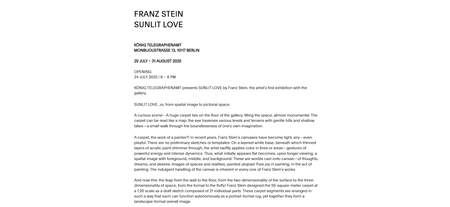 König Galerie выстраивает viewing rooms вокруг медиа. Видеоэкскурсии, цифровые перформативные форматы, съёмки с дронов, интервью — всё это создаёт экспозицию как аудиовизуальный опыт. В отличие от трёх других галерей, König активно моделирует движение зрителя внутри пространства, приближая цифровой опыт к реальному. Этот подход подчеркивает экспериментальность и технологическую смелость институции.