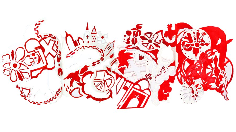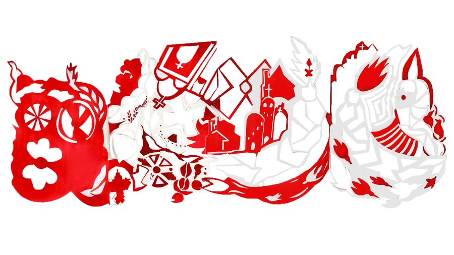 Каждый разворот с иллюстрациями двухсторонний, обратная сторона немного отличается сюжетом. В первом куплете каждая страница краснее предыдущей, а во втором белее.
