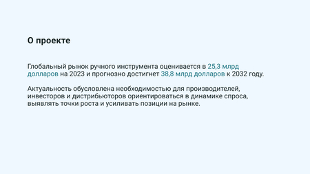 Проект посвящён анализу мирового рынка ручного инструмента.