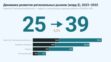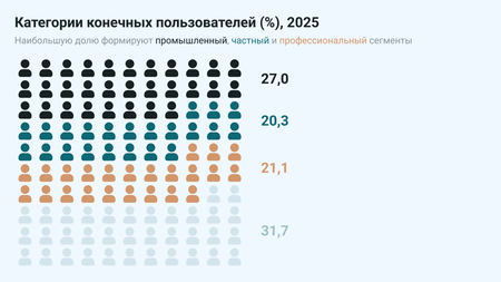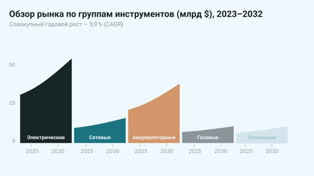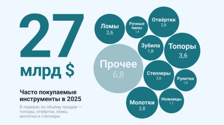 Инфографика отражает ключевых игроков отрасли, структуру рынка по категориям и типам инструментов, каналы продвижения и сбыта, сегменты конечных пользователей, а также экономические показатели в разрезе регионов.