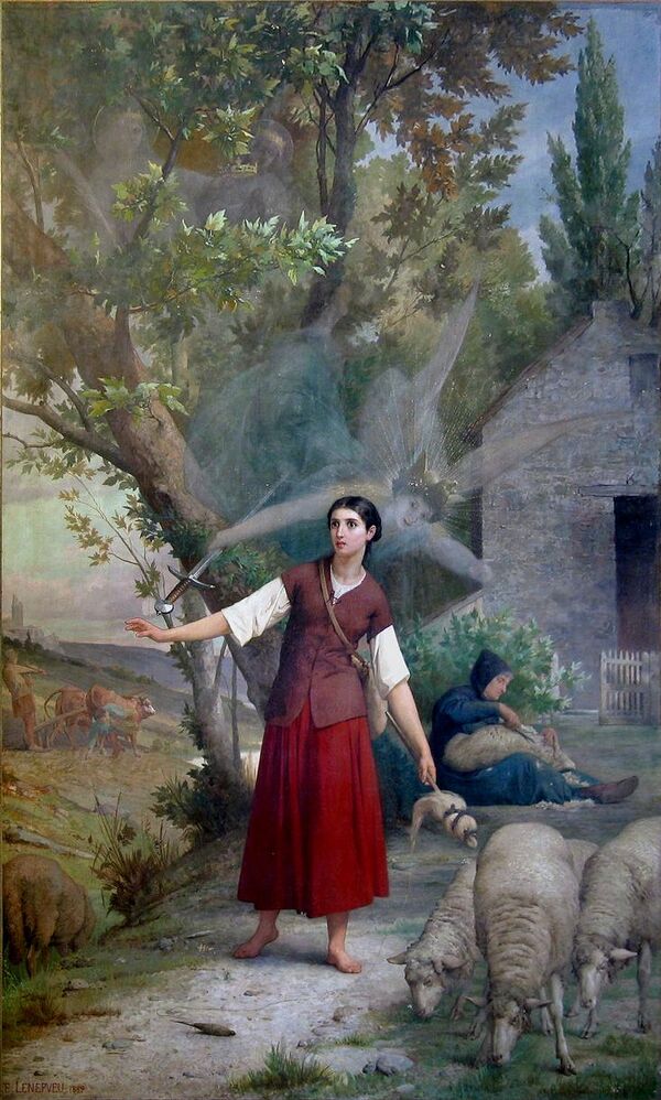 При этом, в документах судебных процессов словами Жанны и свидетелей говорится, что она занималась работой по дому, прядением и ткачеством, и лишь иногда пасла скот [c. 255-256]. Стоит упомянуть, что из источников этот образ родился не в народной среде, а при дворе Карла VII, и лишь потом распространился на остальное общество [].