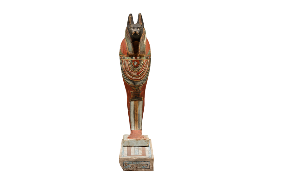 Сосуды для органов мумии. Четыре сына Гора: Дуамутеф (шакал) — желудок, Хапи (бабуин) — лёгкие, Кебексенуф (сокол) — кишечник, Имсет (человек) — печень