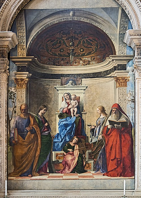 Джованни Беллини (1430–1516 гг.) — ключевая фигура в истории венецианского искусства. В его творчестве преобладало мастерство света, мягкость объемной лепки и свет как конститутивный элемент формы. Данные элементы в работах художника. сделали его связующим звеном между традицией и новаторством. Работы Джованни показывают переход от темперы к маслу, что позволило добиться глубокой прозрачности глазурей и тонких градаций тона.