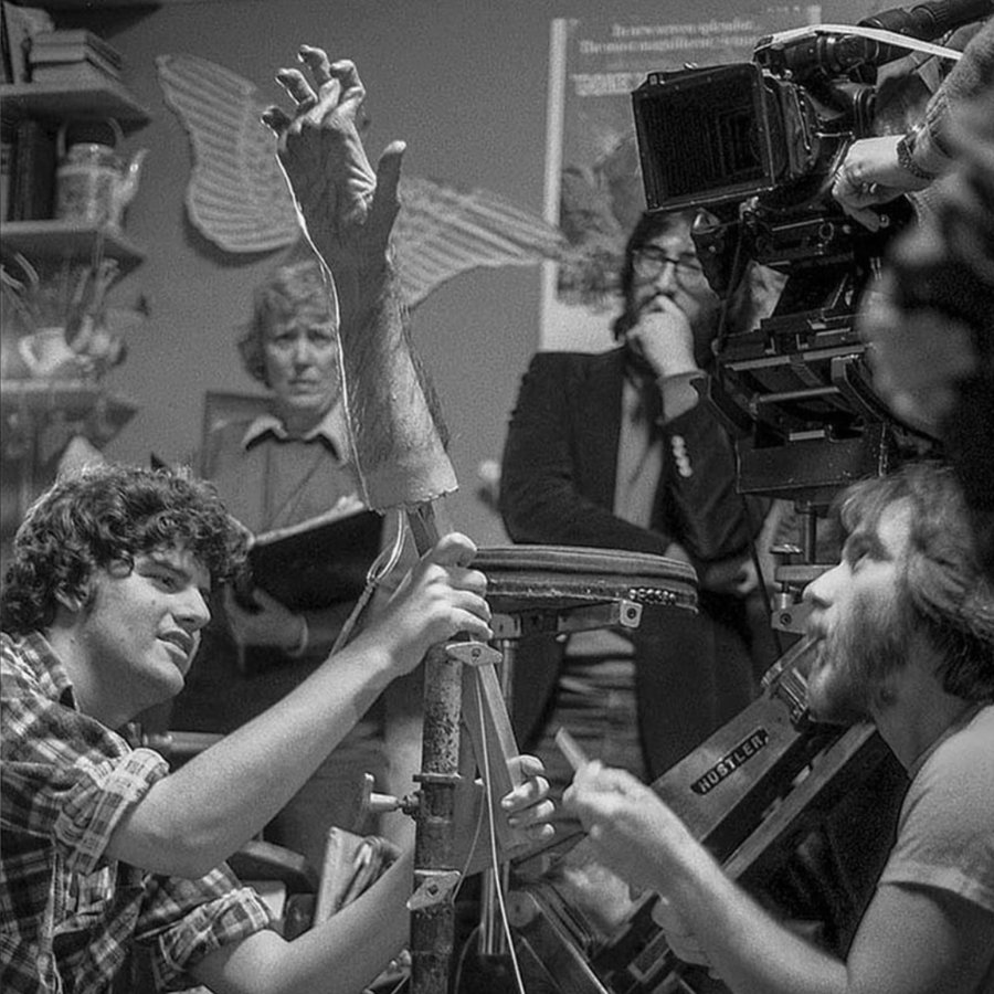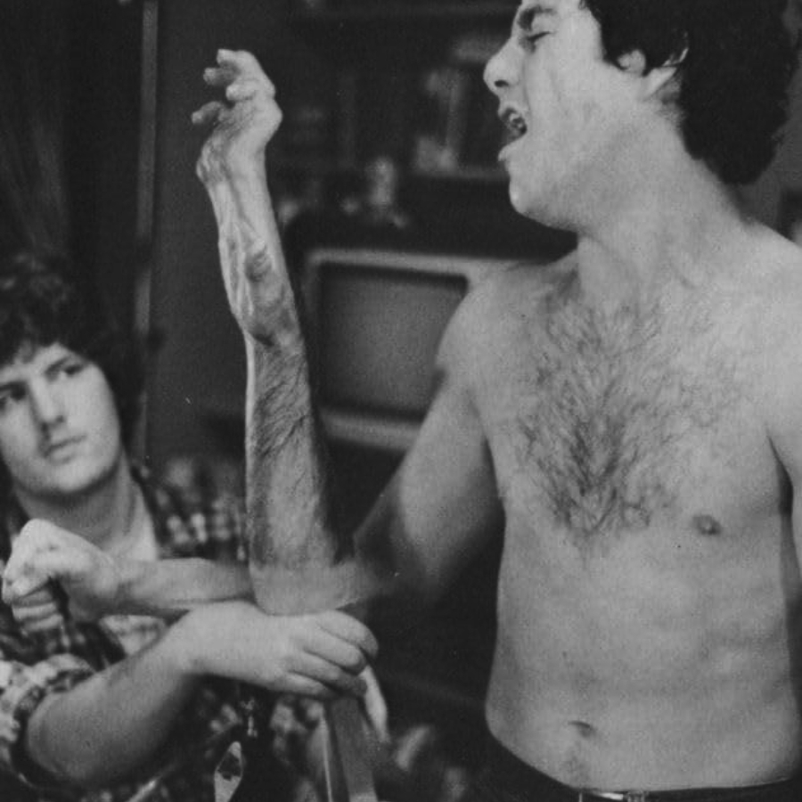 Фото со съемок фильма «Американский оборотень в Лондоне» 1981. Режиссер Джон Лэндис. Разработчик и создатель специального грима Рик Бэйкер