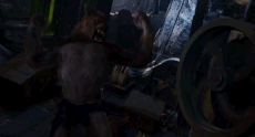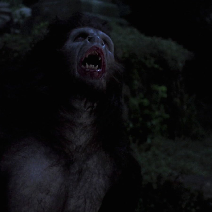 Для сцены превращения оборотня сняли два дубля. С актером и с исполнителем в костюме монстра. Их совмещали покадрово и сглаживали переход с помощью CG. Однако результат выглядит заметно искусственным, переход между двумя элементами остается видимым и недостаточно интегрированным.
