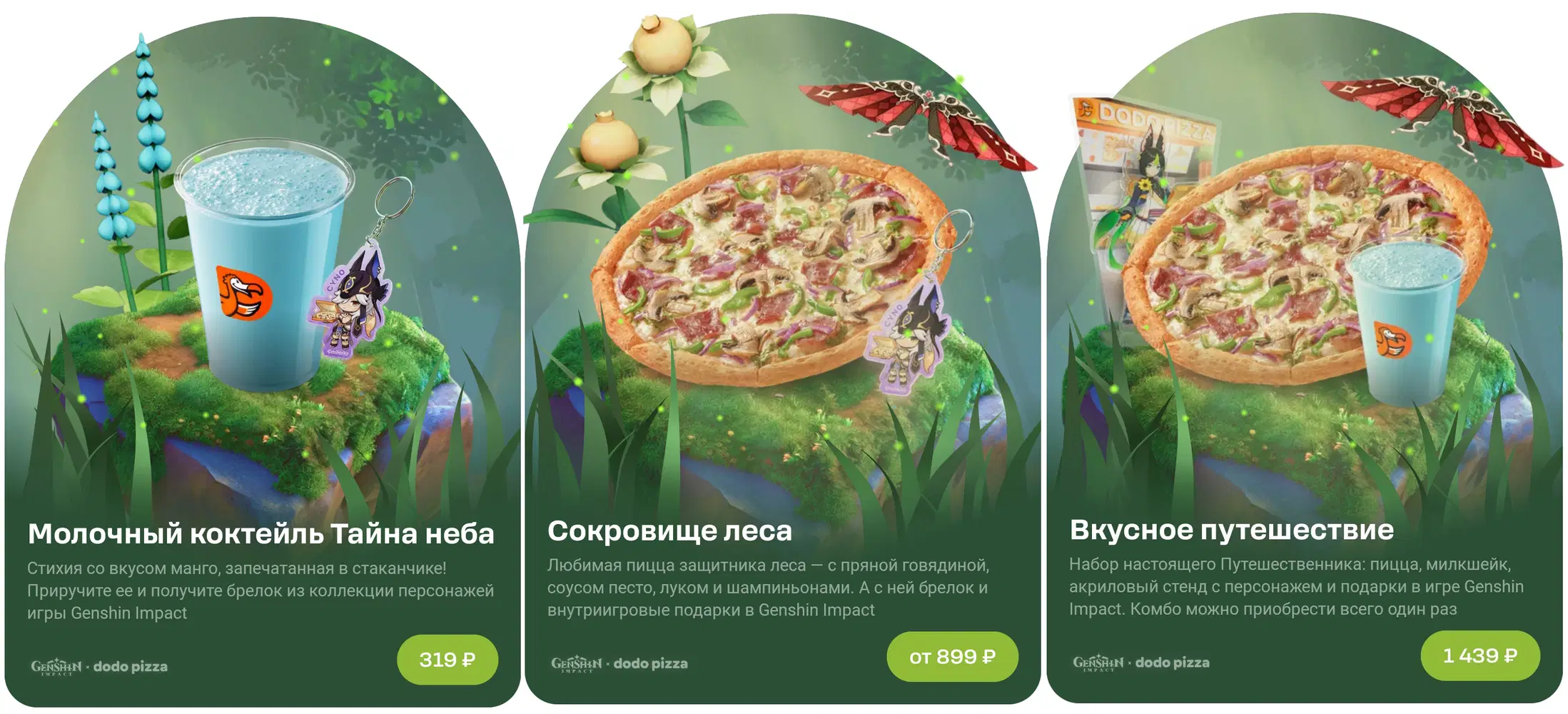https://mmo13.ru/news/post-29206 — Краткий обзор коллаборации Genshin Impact × Додо Пицца. (дата обращения (19.11.2025)
