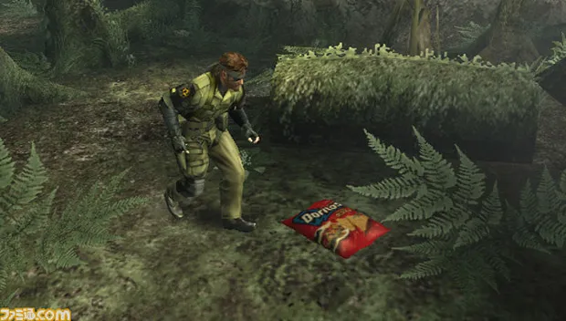 Такой продакт-плейсмент создаёт интересный контраст: лёгкие поп-культурные символы вроде Mountain Dew и Doritos оказываются в серьёзном военном сеттинге Metal Gear. Этот диссонанс характерен для стиля Хидео Кодзимы, который часто использует элементы современной массовой культуры как знаки, играющие против драматичности сюжета, что является хорошим для запоминания игроком приемом. Похожим образом в Metal Gear Solid 4 работает плеер, визуально близкий к iPod: он не рекламирует бренд напрямую, но считывается как культурная цитата, встроенная в интерфейс героя.