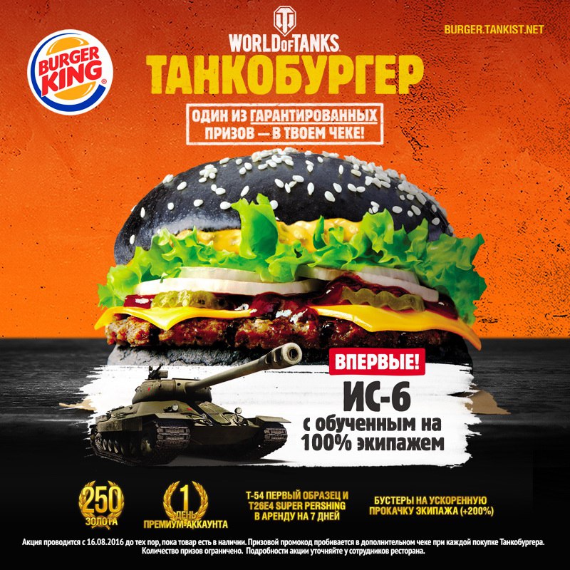 https://adindex.ru/news/releases/2016/08/17/135821.phtml — Акция World of Tanks × Burger King — Танкобургер и совместные промо-мероприятия. (дата обращения (19.11.2025)