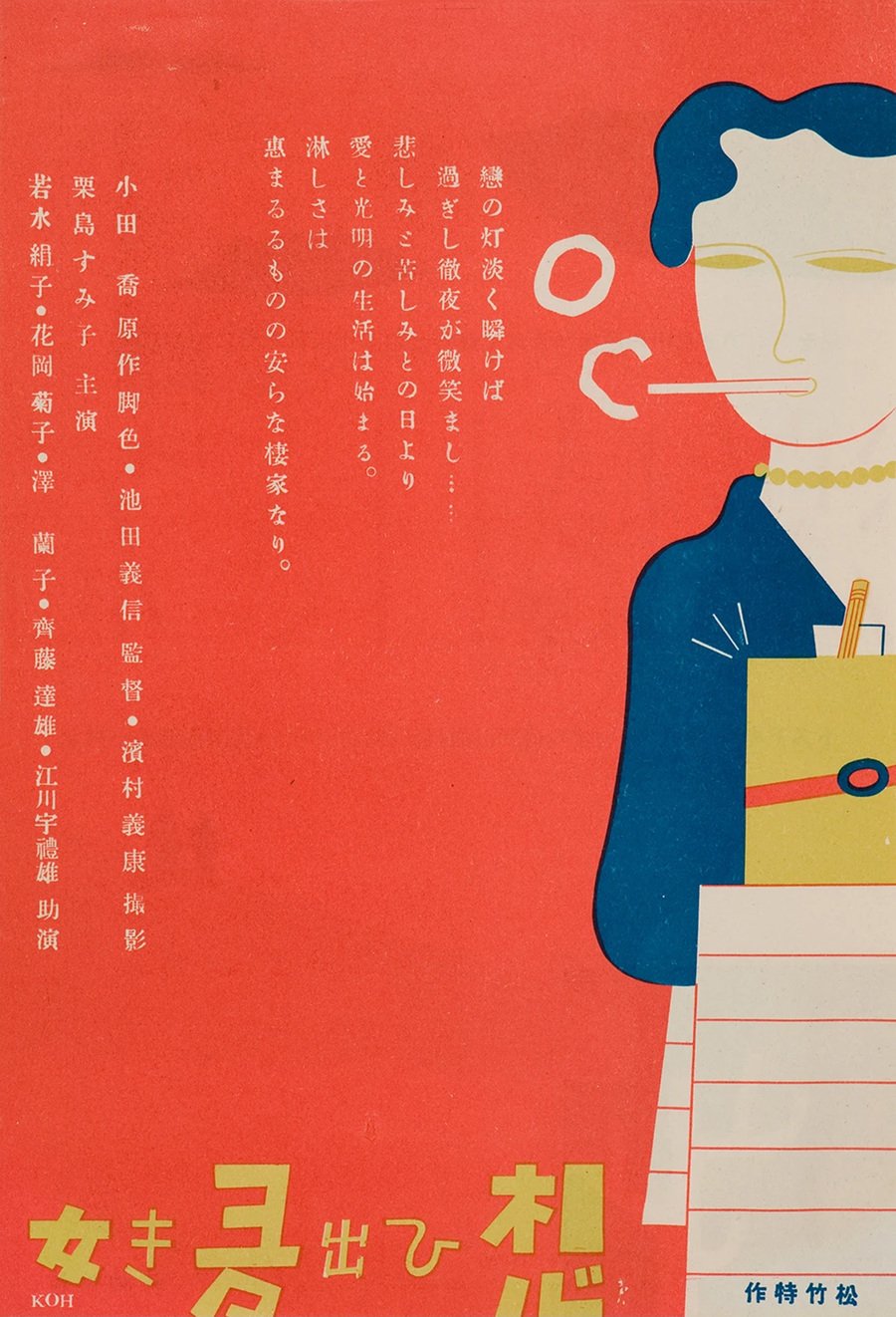 Говоря о других работах этого периода стоит вспомнить о Такэси Коно, который большую часть работ выполняет вне агентства. Так, например в 1930-е годы он создает серию плакатов для киностудии «Shochiku». В них отчетливо видна идея отхода от декоративности к функциональности. Мы видим геометрически выстроенные композиции: простые формы, чистые цвета и лаконичные силуэты создают ощущение простора — все элементы сбалансированы.