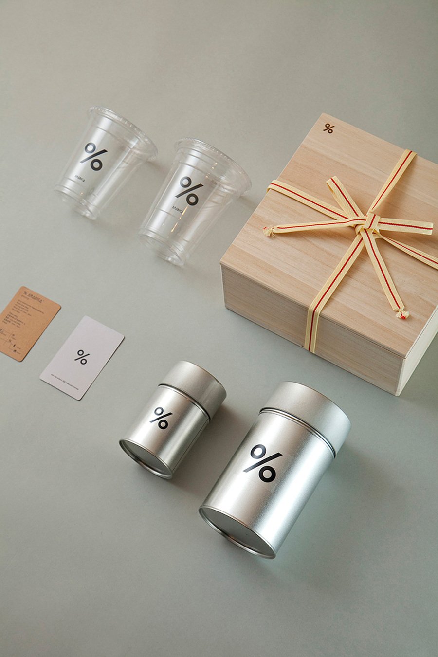 Так, например, одна из самых популярных кофеен мира «%Arabica» фактически является полным олицетворением философии японского фирменного стиля. Знак бренда состоит всего из трех символов, собранный как будто по модульной сетке. Брендинг практически отсутствует, мы видим только знак «%», который встречается на носителях — никаких логотипов или названий.
