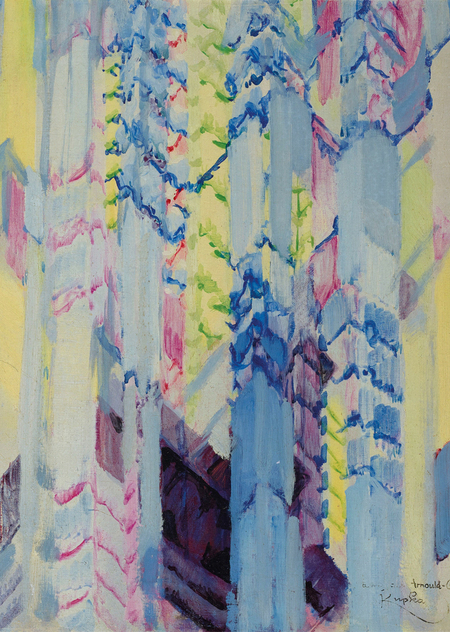 Переломный момент в творчестве Купки наступает под влиянием научных открытий его времени. Его увлекает хромофотография, разложение движения на последовательные фазы. Этот анализ приводит к систематической деконструкции формы. Центральной работой этого периода становится серия «Женщина, собирающая цветы» (1908–1910). Здесь фигура буквально разворачивается во времени и пространстве. Мы видим не одну женщину, а процесс, «жизненный импульс». Многочисленные этюды к этой серии показывают, как Купка дробит тело на цветовые плоскости и арки, стремясь схватить кинетическую сущность жеста, а не его статичную оболочку.