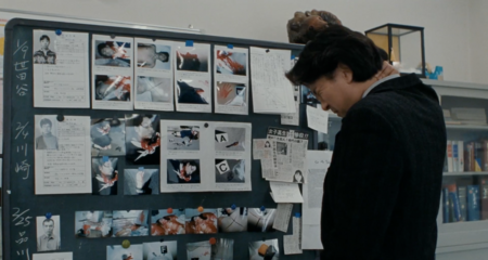 В «Воспоминания об убийстве» камера часто фиксирует пустые дороги, заброшенные поля и дождливые пейзажи, создавая атмосферу неизбежной угрозы. POV используется крайне редко, а напряжение строится через визуальное и социальное контекстуальное давление.