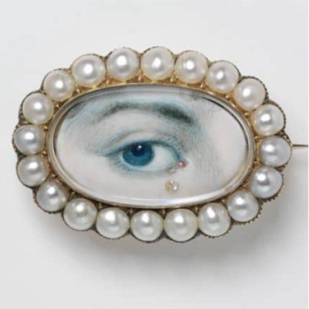 Crescent Shaped Eye Miniature Set in a Pin/Pendant with Pearl Surround c. 1800. © Victoria and Albert Museum, London.