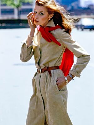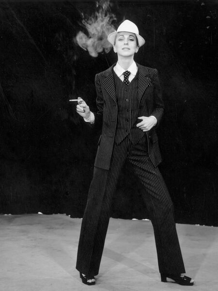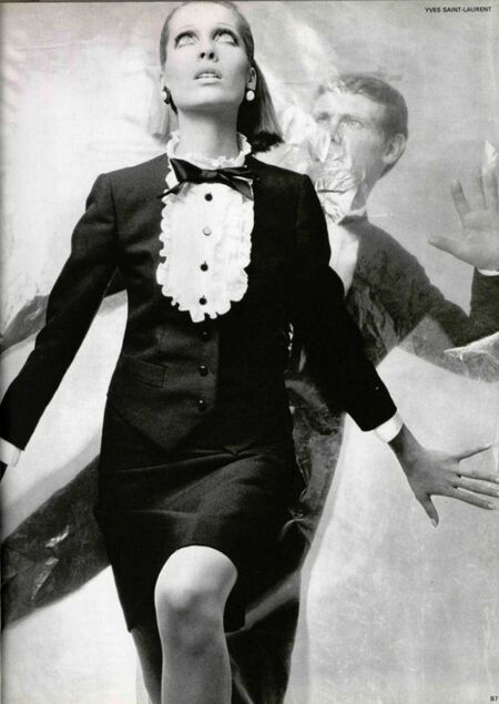 Развитие образа сильной и свободной девушки на этом не закончилось. В 1966 году Ив Сен‑Лоран представил Le Smoking — женский брючный костюм, адаптированный к особенностям женской фигуры. Это событие стало сенсацией: до того брюки на женщинах считались недопустимыми, а в ряде стран даже запрещались законом.