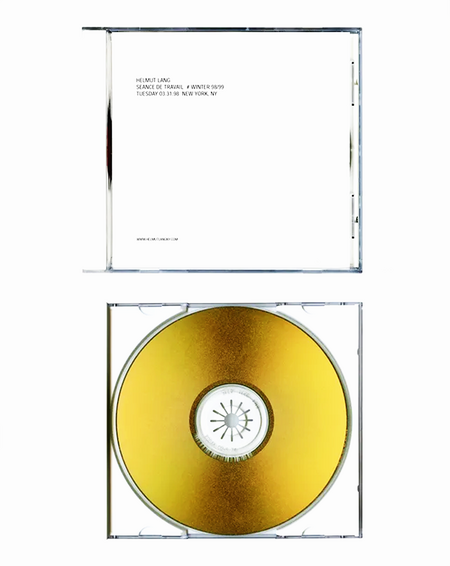 слева — сайт онлайн-показа Helmut Lang, 1998 г. справа — диск с записью показа, выпущенный специально для прессы
