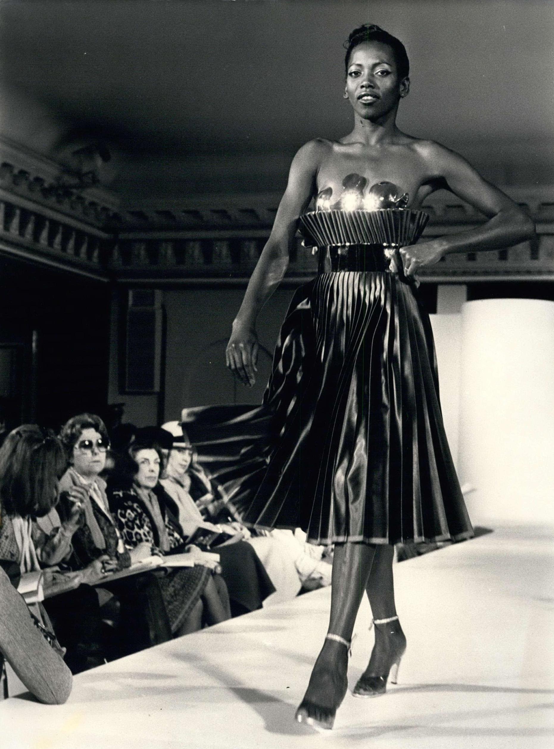 слева — показ Paco Rabanne, 1 февраля 1979 г. справа — певица Дайана Росс в костюме от Bob Mackie, 1970 г.