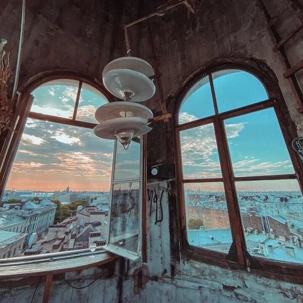 Также хочется поговорить о том, где же собирались неофициальные фотохудожники и выставляли свои работы. Здесь речь пойдет, в первую очередь о квартирных выставках. Не имея возможности показывать свои произведения официально, в галереях, такие фотографы создают свои собственные выставки, выступая и в роли автора, и в роли галериста. Таким местом могла стать мастерская или дом фотографа, а также можно было договориться с творческими друзьями-музыкантами и воспользоваться комнатой у них в квартире. Иными словами, такая практика «собственных» квартирных выставок для фотографов, которых цензура поставила в ранг маргиналов, стала в те времена основной в Ленинграде. На фото ниже мы видим дом с башней у Пяти Углов. Для данного исследования данный перекрёсток — не формально пересечение дорог, это преобладающая арх-черта, место притяжения неофициального искусства Ленинграда 80-х. И в центре этого перекрестка — доходный дом Иоффа с узнаваемой башней, который был воздвигнут арх. Лишневским в 1913 г.