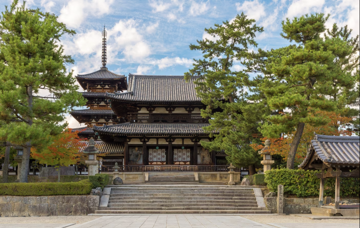 Японский буддистский храм — это буддизм, воплощенный в духе японской скромности, с использованием дерева и конструктивной честности. Когда буддизм вошел в страну в VI веке, вместе с ним пришли китайские и корейские прототипы храмов, но японцы сразу переработали их под свои условия и традиции. Первые комплексы периода Асука (538–710 гг.), такие как Хорю Гакумон-дзи, показали ключевую особенность японского подхода: доминирование деревянного каркаса и тяжелой крыши при минимальной роли стен, ведь основную нагрузку на себя берут мощные колонны внутри здания.