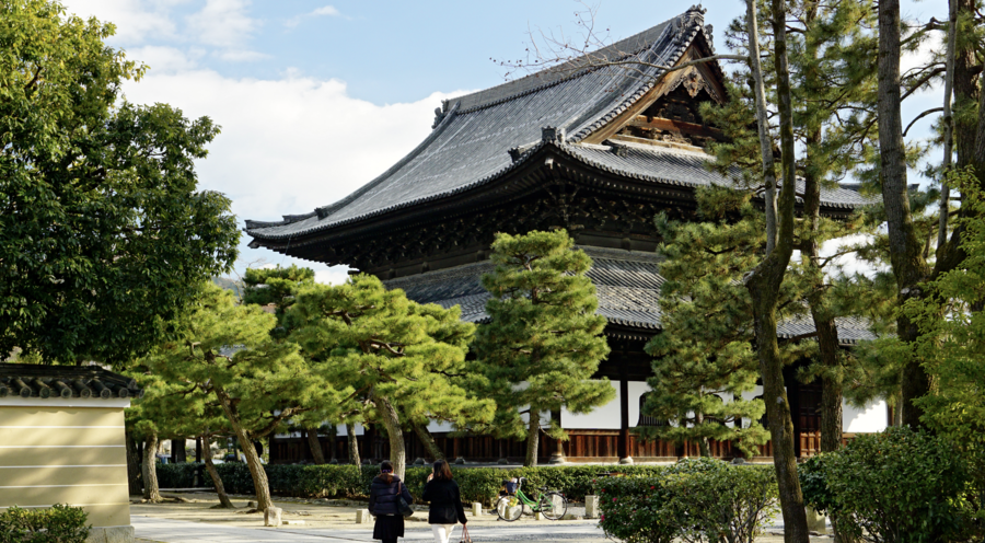 Кеннин-дзи основан в 1202 году монахом Эйсай и является старейшим дзен-храмом в Киото. Архитектура отражает раннюю японскую адаптацию дзен. Здесь мы видим строгие линии, залы для медитации, отсутствие перегруза декором.