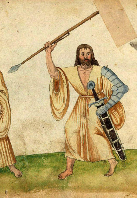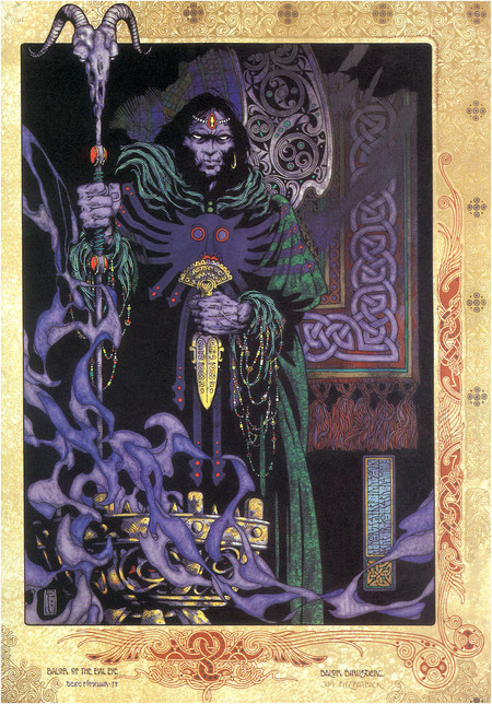 Фрагмент из «Кодекса костюмов», 1547. Мифический герой Нуаду Аргетлам // «Балор Злоглазый», Джим Фицпатрик, 1979.