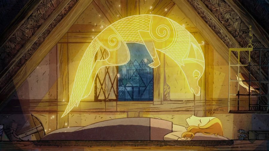 Фрагмент из мультфильма «Песнь моря», Томм Мур, 2014. Главная героиня Сирша, шелки.