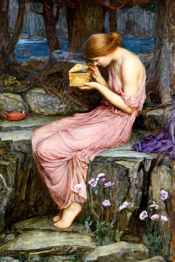 Джон Уильям Уотерхаус, «Пандора», 1896 / Джон Уильям Уотерхаус, «Психея открывает золотую шкатулку», 1903
