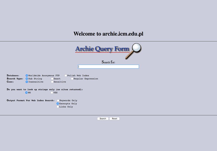 Archie — Страница поиска. 1990 г. // WebCrawler — Страница поиска. 1994 г. // Infoseek — Страница поиска. 1995 г.