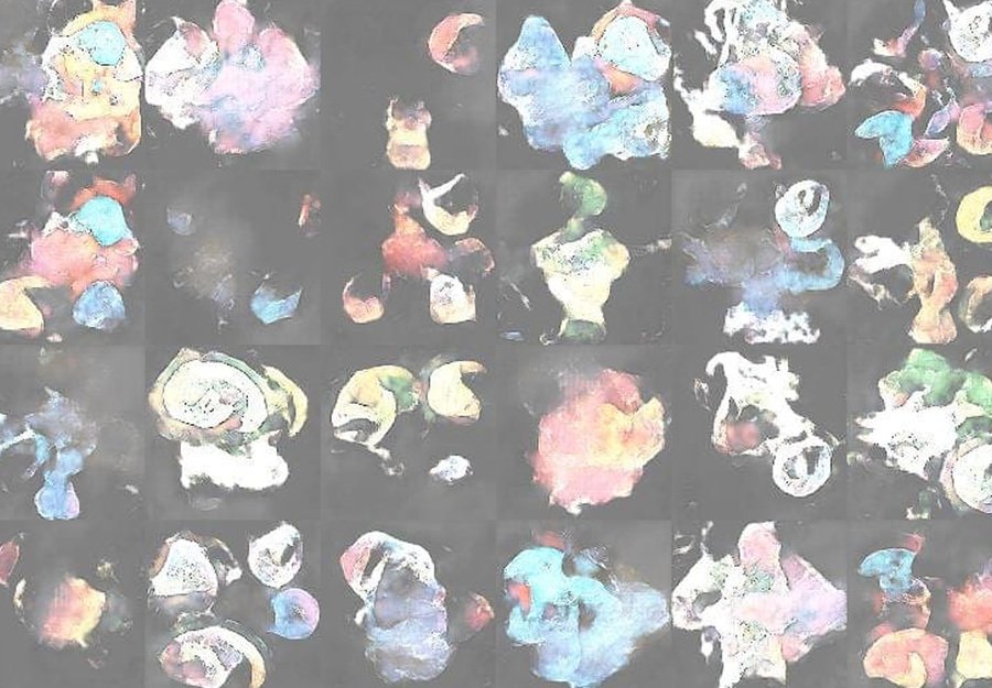 Первые результаты выглядит достаточно грубо и страшно: формы узнаваемы, но очень смазаны. Сначала модель учится на генерации простых цифр, после переходит к генерации более сложных задач. Важно отметить, что уже тогда осуществляются попытки создания портретов: силуэты размыты, всё как будто покрыто туманом.