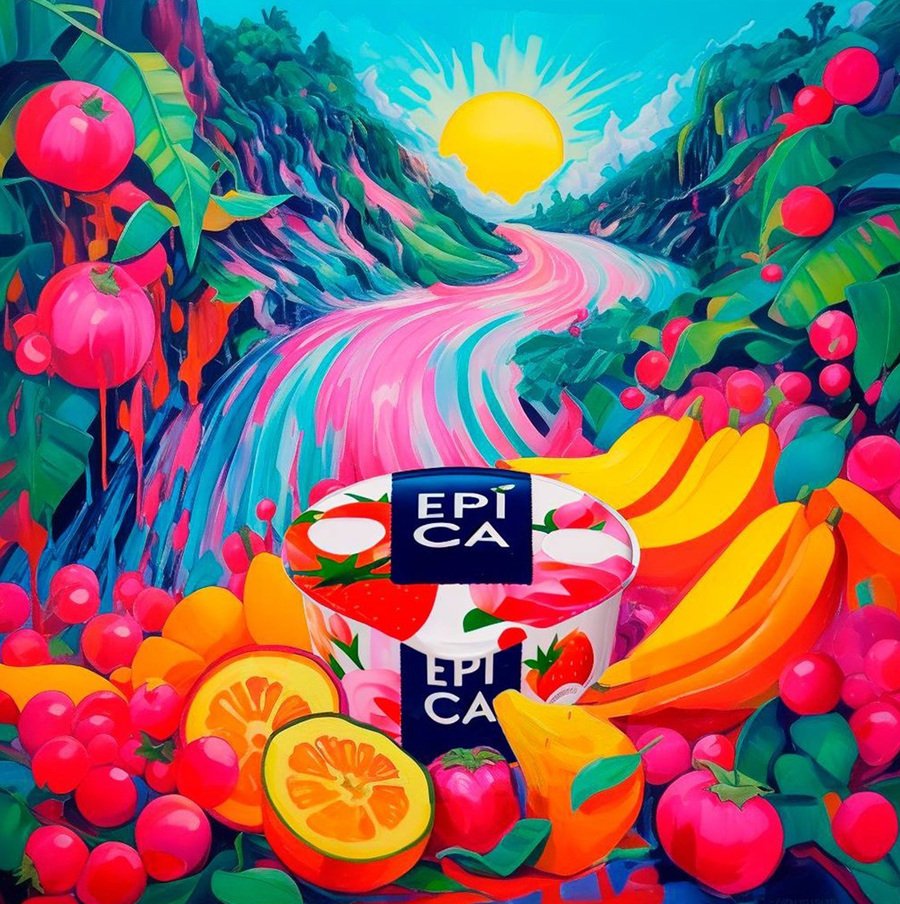 Российский бренд молочных продуктов также использует нейросети для создания визуального контента. Внешняя среда, в которой находится продукт, создаётся с помощью генеративной графики, а сам продукт интегрируется вручную через другие программы. Важно отметить, что такой контент формирует основу визуального языка бренда в социальных сетях. Этот подход помогает бренду оставаться виральным и привлекать новых покупателей.