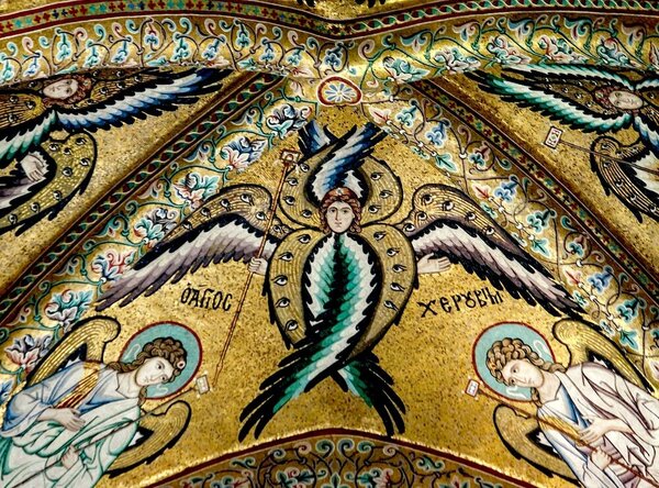 Ангелы Господни, Серафимы и Херувимы. Византийская мозаика собора в Чефалу, Сицилия. Около 1166 года [Электронный ресурс] // LiveJournal. URL: https://diomedes2.livejournal.com/1243268.html (дата обращения: 24.11.2025).