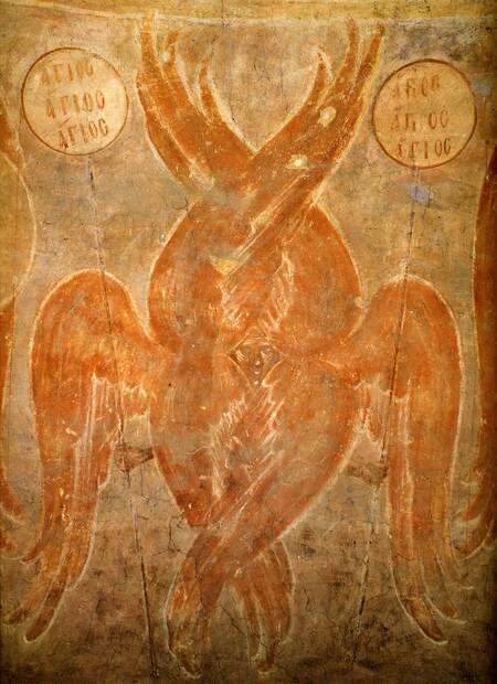 Автор неизвестен, «Херувимы», XII в. // Феофан Грек, «Серафимы», 1380–1390 гг.