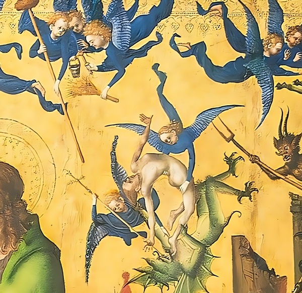 В «Страшном суде» ангелы показаны в активной и воинственной роли: они участвуют не только как посланники, но и как защитники в духовной борьбе. На фоне хаотических сцен их фигуры выделяются живостью и выразительностью, активно влияя на события. Готический ангел здесь — полноценный действующий персонаж, сохраняющий небесную идеальность и значимость в композиции.
