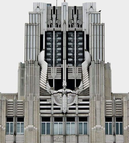 Продолжая тему электроэнергии как части технического прогресса стоит рассмотреть здание архитектора Мелвина Л. Кинга Ниагара‑Мохаук Билдинг, являющимся штаб‑квартирой энергетической компании. Хоть башню украшает скульптура «Дух энергии» (Spirit of Energy), напрямую ассоциирующаяся с силой и прогрессом, её дизайн напоминает античные мифологические образы крылатой фигуры.