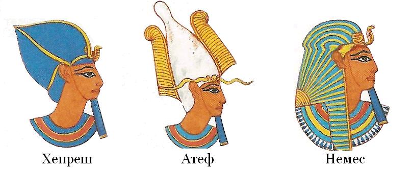 В эпоху Древнего Египта правители-фараоны облачались в разнообразные головные украшения, прошедшие путь развития от венцов до платков немес и диадем. Каждый из этих атрибутов служил олицетворением определённых граней власти фараона и применялся в зависимости от конкретных обстоятельств.