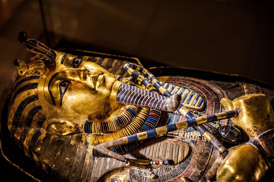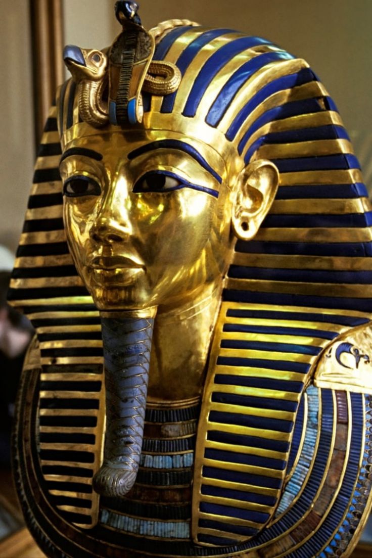 Тутанхамон (Тутанхатон) фараон Древнего Египта в полном одеяния фараонов влитыми из золота и драгоценностей.
