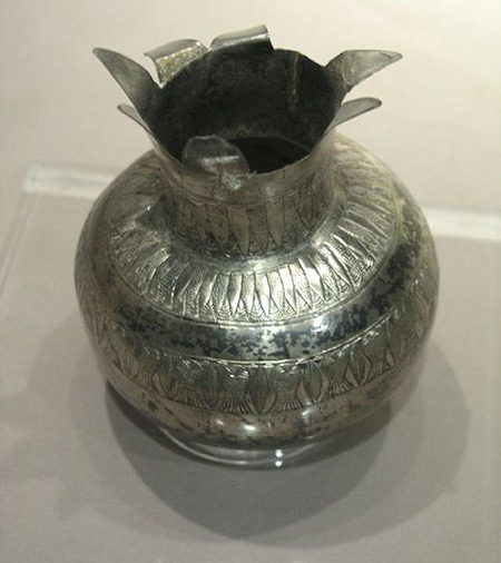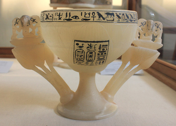 Слева — Серебряная ваза в форме граната. Гробница Тутанхамона, справа — Чаша в форме цветка лотоса. Гробница Тутанхамона.