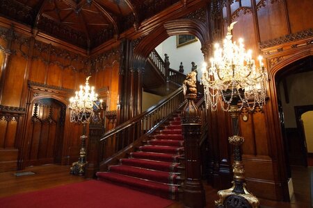 Замок Райхсбург (Кохем, Германия), около начала 12 века, слева — рыцарский зал, справа — лестница.