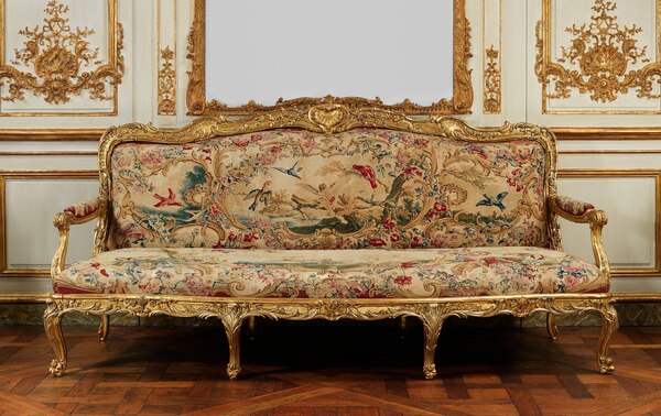 Слева — Комод, Франция, Париж, ок. 1745–1749, справа — Н. К. Фолио (1706–1776), Жан-Батист Удри (1686–1755), диванчик (часть набора), около 1754–1756 гг.