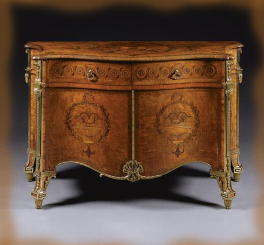 Слева — антикварный комод Харрингтон (Harrington Commode), 1770 г., Томас Чиппендейл, справа — комод князей Бадминтон, 1726 г., в Флоренция.