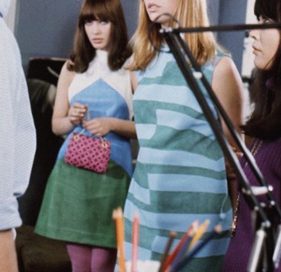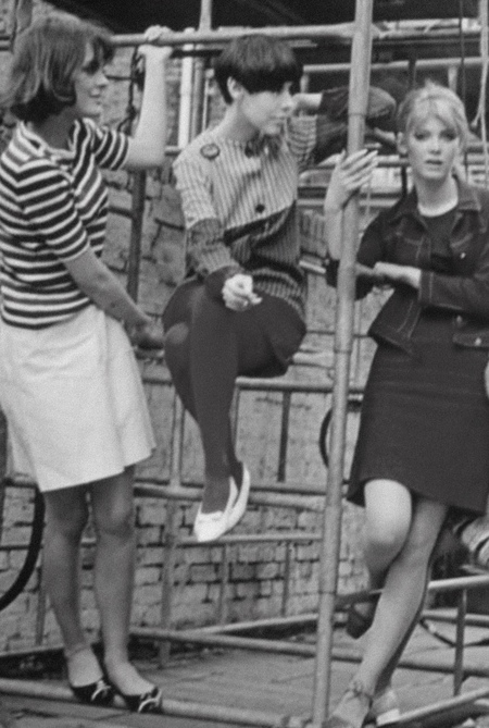 Возможно, первое, на что мы обратим внимание и что является масштабным визуальным кодом социальной и сексуальной революции свингующего Лондона — это мини-юбка. Если раньше длина юбки была ниже колена или по колено, сейчас мы можем видеть юбки, поднятые на 15-20см выше колена. Их сочетают с цветными колготками, туфлями и сапогами на низком каблуке. Мини-юбка несла в себе манифест. Отказ от патриархального контроля над телом женщины и социальную эмансипацию. Акцент теперь делался на длинные и обнаженные ноги. В кинематографе ноги также стали часто ловить на себе объектив, демонстрируя новую энергию женского тела.