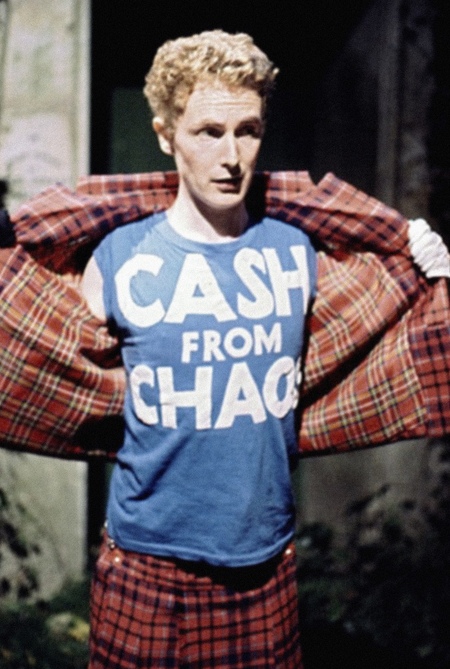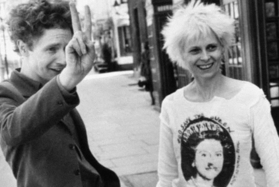 Кадр из фильма «Великое рок-н-ролльное надувательство» в костюме Вивьен Вествуд и бандажные брюки Вивьен Вествуд