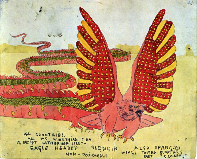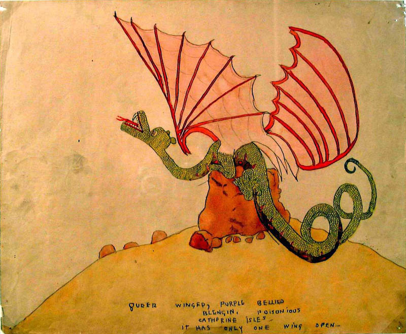 Он также рисовал серию работ с драконоподобными, причудливыми существами. Иногда «очеловечивая» их, давая им человеческую голову.
