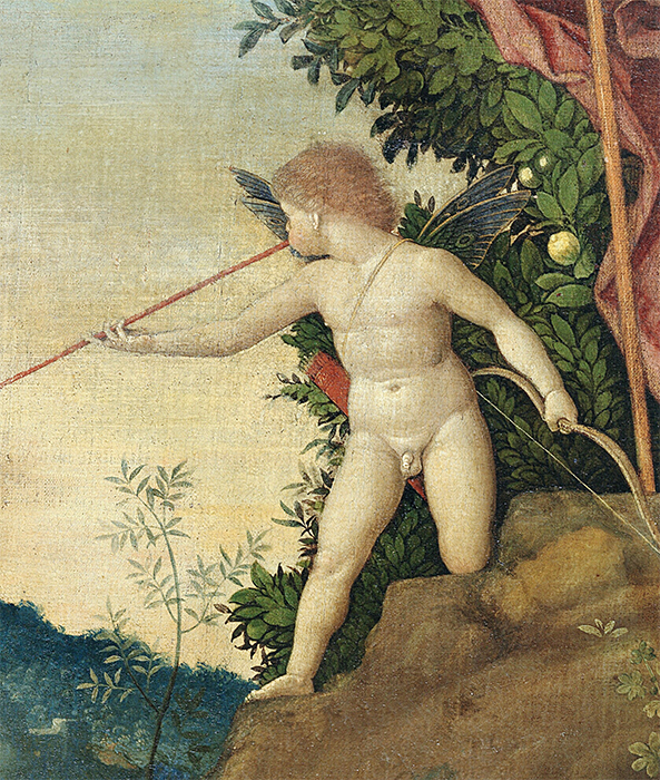 Смысл. У Мантеньи Купидон — показатель возвращения к античности как истоку художественных форм и идеалов, меньше — игривый шут, больше — знак канона и любви.