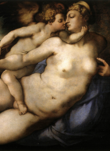 Фрагменты картины. Якопо Понтормо — «Венера и Купидон», ок. 1534, Галерея Академии, Флоренция.