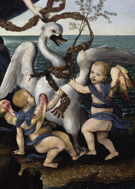 Смысловая функция образа Купидона в работе и в ренессансной культуре в целом. В этой и в родственных маньеристских композициях Купидон перестаёт быть только беззаботным декоративным путто и становится многоуровневым семиотическим маркером: он — агент желания, индикатор опасности (скрытой за привлекательностью), и одновременно — «речь» художника о придворной морали, о сложности человеческих страстей и о политике покровительства (аллегории часто имели и политическое измерение при дворе).