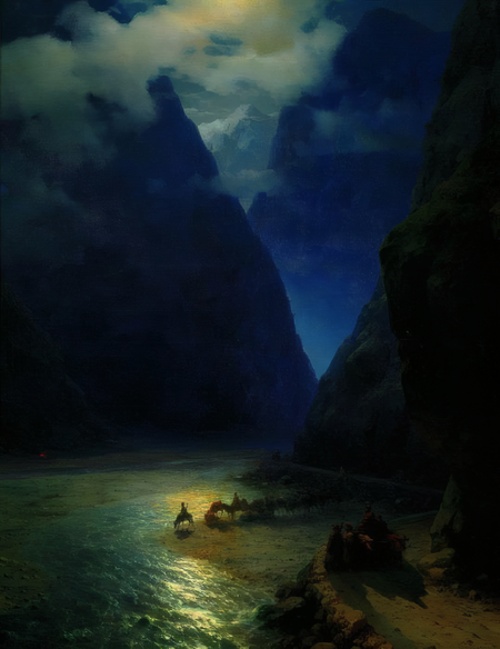 И. К. Айвазовский, Дарьяльское ущелье, 1862 г.//И. К. Айвазовский, Дарьяльское ущелье в лунную ночь, 1868 г.