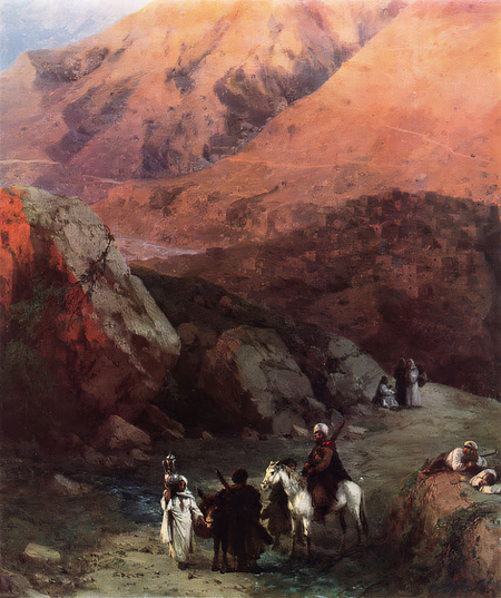 И. К. Айвазовский, Аул Гуниб в Дагестане. Вид с восточной стороны, фрагмент 1869 г.//И. К. Айвазовский, Аул Гуниб в Дагестане. Вид с восточной стороны, 1869 г.