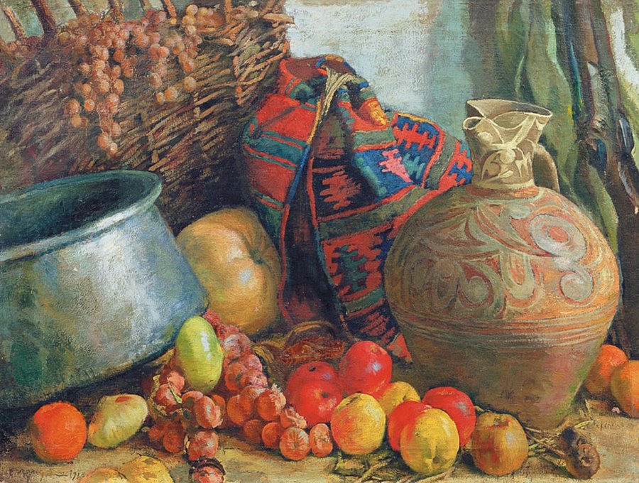 Е. Е. Лансере, Кавказский натюрморт, 1918 г. //Е. Е. Лансере, Натюрморт с полотенцем Хаджи-Мурата, 1920 г.