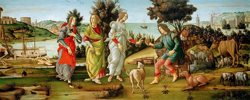 Неоплатонизм, популярный во Флоренции XV века, оказал заметное влияние на мировоззрение и художественный язык Боттичелли. Это проявляется в нескольких ключевых аспектах. Например, неоплатоники различали «низшую» (земную) и «высшую» (духовную) любовь. У Боттичелли женские образы нередко создаются так, чтобы отражать подъём души от чувственного к духовному. Красота же трактуется как отражение божественной гармонии, а искусство для него как путь к познанию высшего.